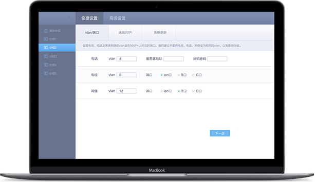 融合通信终端MAP+的AC管理系统具备发现功能,可以集中管理局域网内的MAP+,能通过简洁的web界面集中配置MAP+的网络、电话、无线、固件升级等。